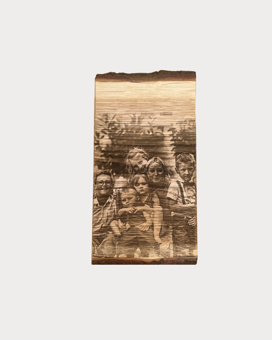 Holz ist ein Naturprodukt und kein Stück gleicht dem anderen. Je nach Struktur, From und Aussehen, können sehr feine Fotodetails verloren gehen. Wir achten aber stets darauf, dass dein Foto/Motiv bestmöglich zur Geltung kommt. Weiters können wir nicht garantieren, dass die Rinde bei allen Produkten vollständig erhalten ist. Falls einseitig die Rinde bereits bröckelt und abfällt, werden wir der Gleichmäßigkeit halber auch die zweite Seite abschälen. Weiters: Das Holz arbeitet, daher können im Laufe der Zeit und je nach Holzart und äußerlichen Einflüssen wie zB. Temperatur kleine Risse im Produkt entstehen.