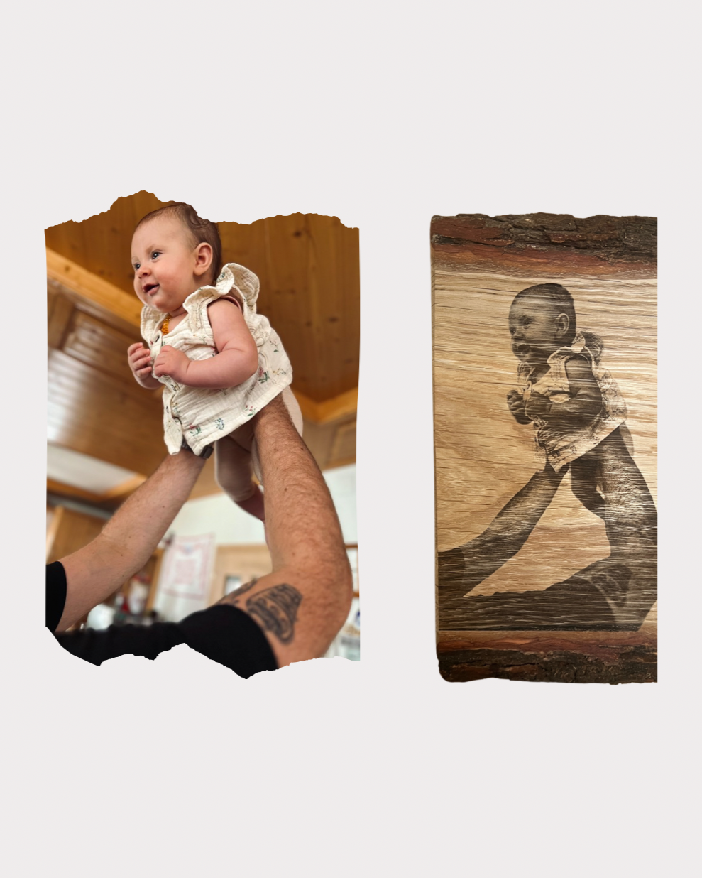 Deine Erinnerung, dein Foto- das alles auf einem Stück Eiche Naturholz.